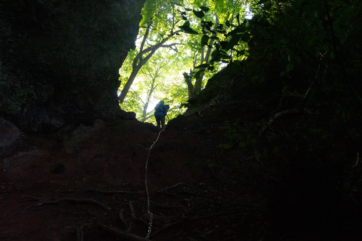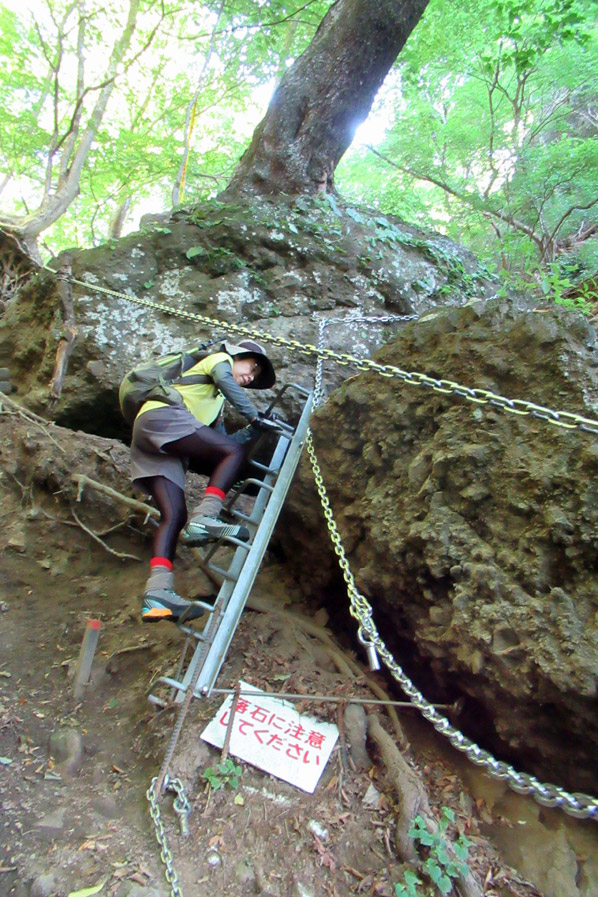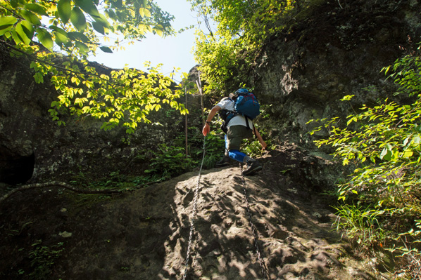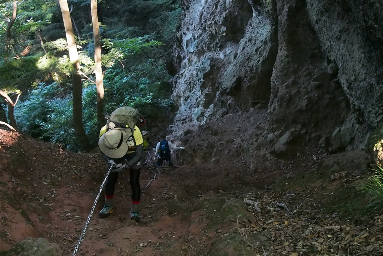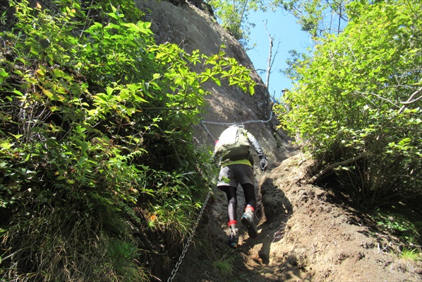 | 天狗の架け橋通過後のクサリ場 ※吉田類とアシスタント女性が連なって上っていたクサリ場(間違っても真似をしないでくださいね) |
