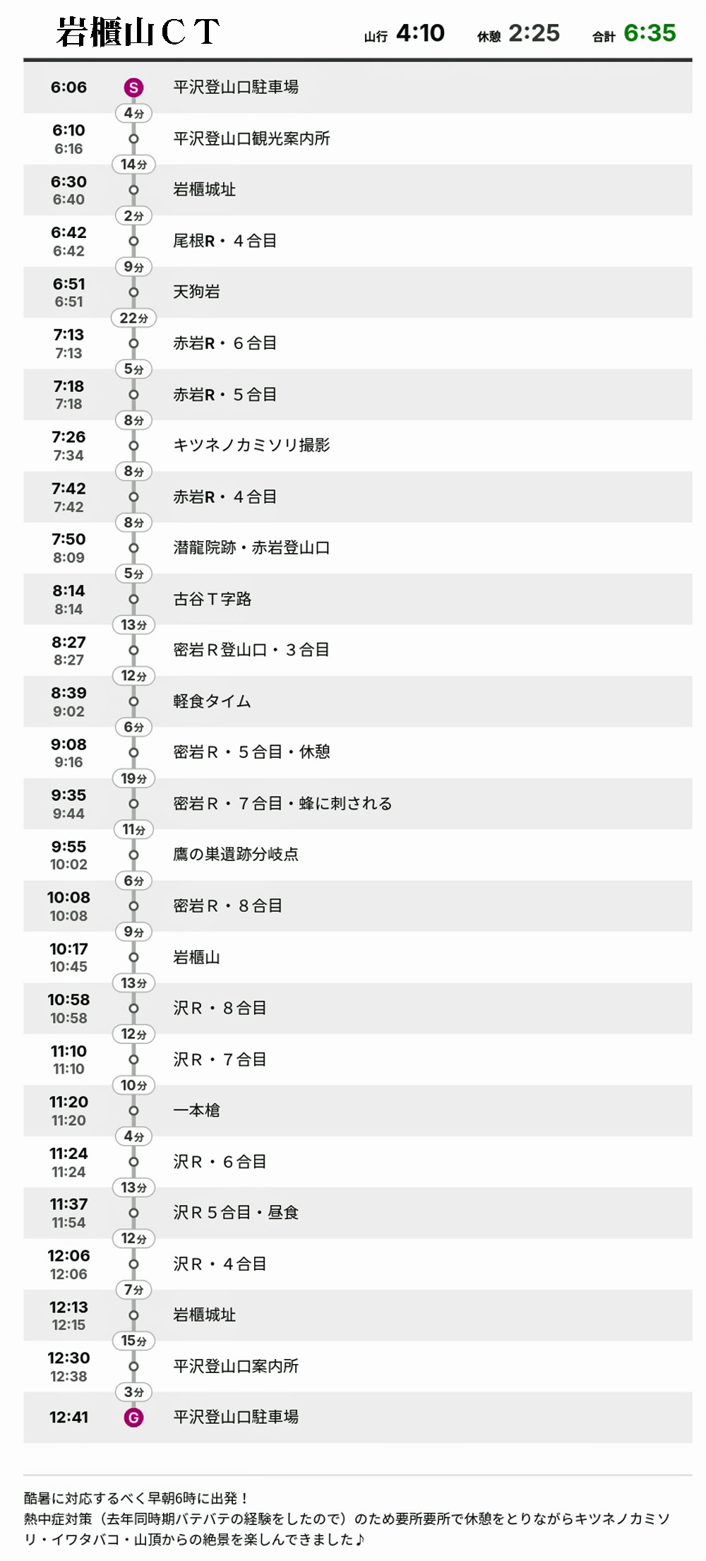 | 《岩櫃山コースタイム他》 写真撮影時間20分〜100分含む |