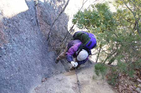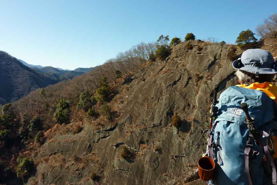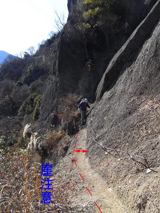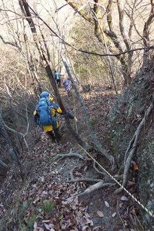 〜 昼食タイム 12:06-27 〜 露岩(トラロープ) 12:30 〜 稚児落し 12:45-55