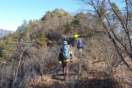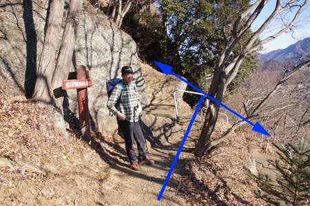 〜 天神山分岐点 12:56 〜天神山(石祠) 13:14-17 〜 兜岩(岩場経由)分岐点 13:30
