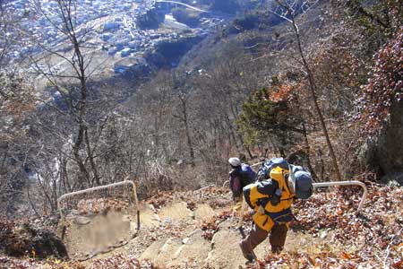 〜 稚児落し登山口・瑞仙橋吊り橋(ずいせんきょう) 11:49 〜 鉄階段 11:51