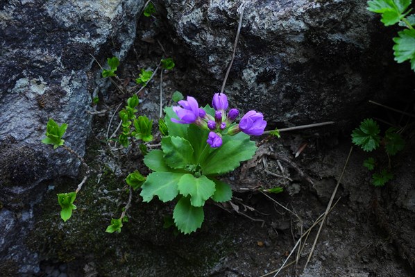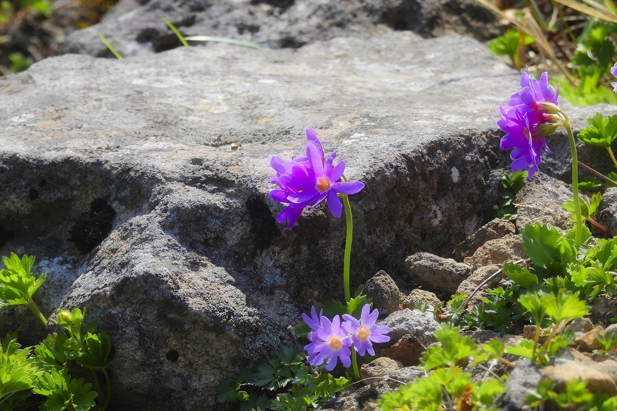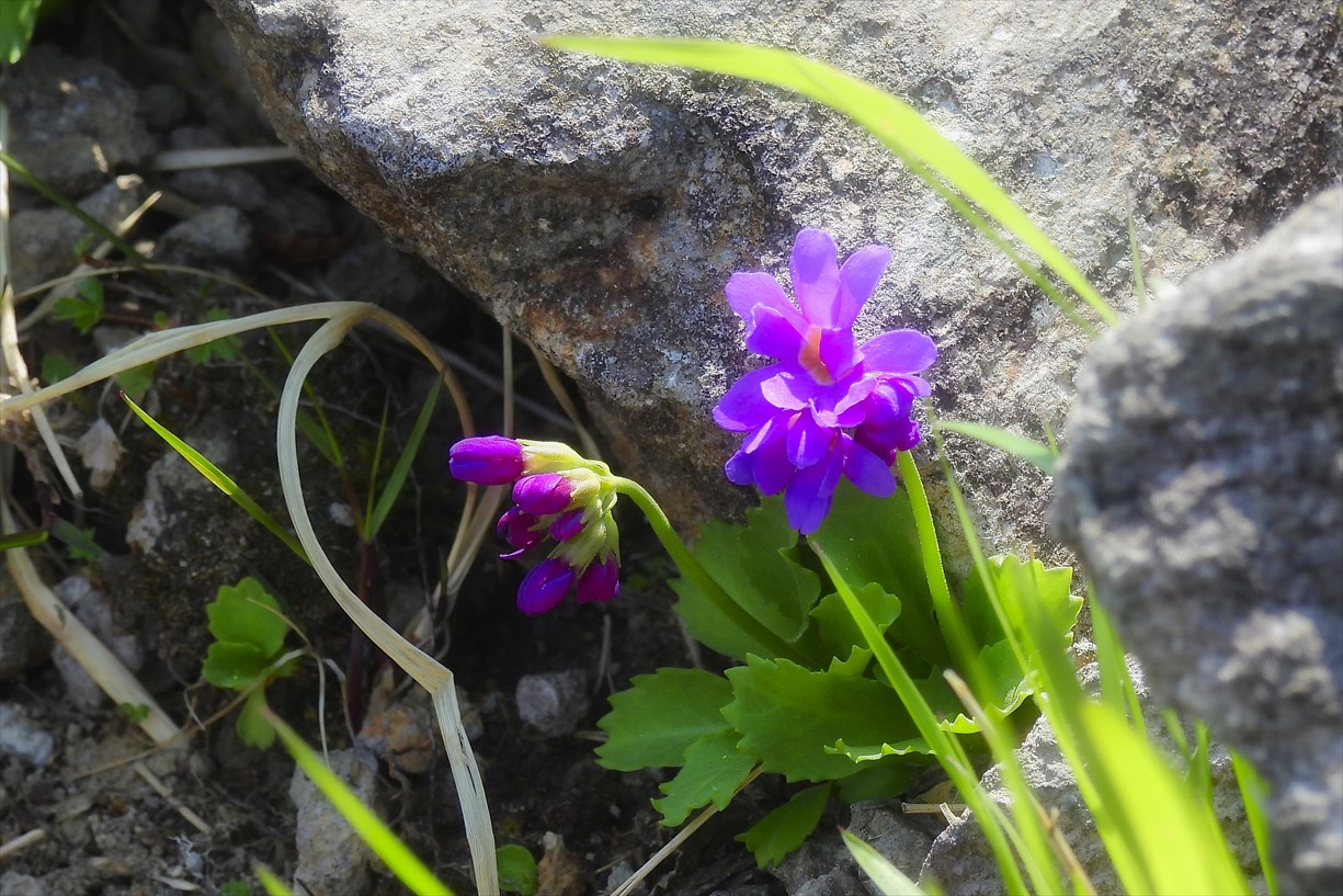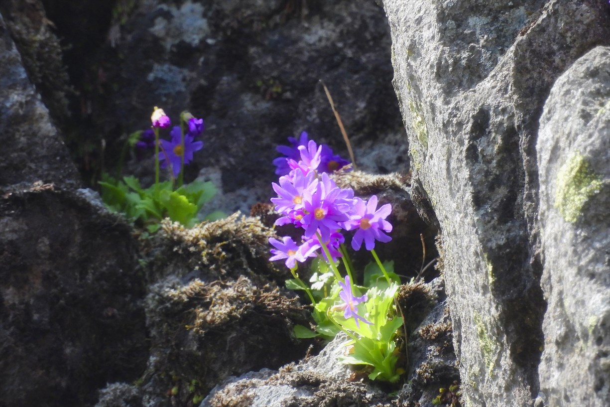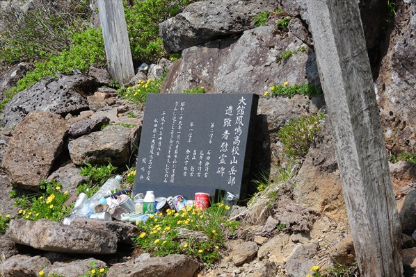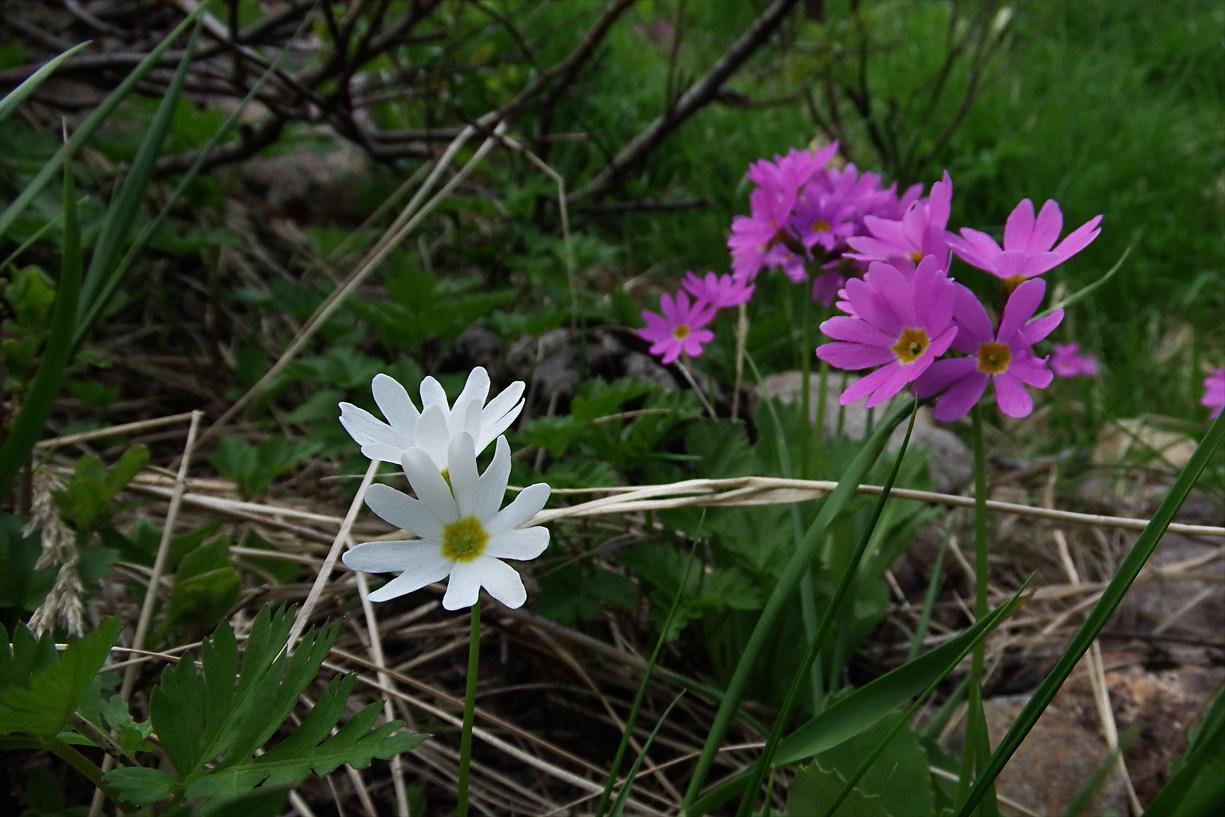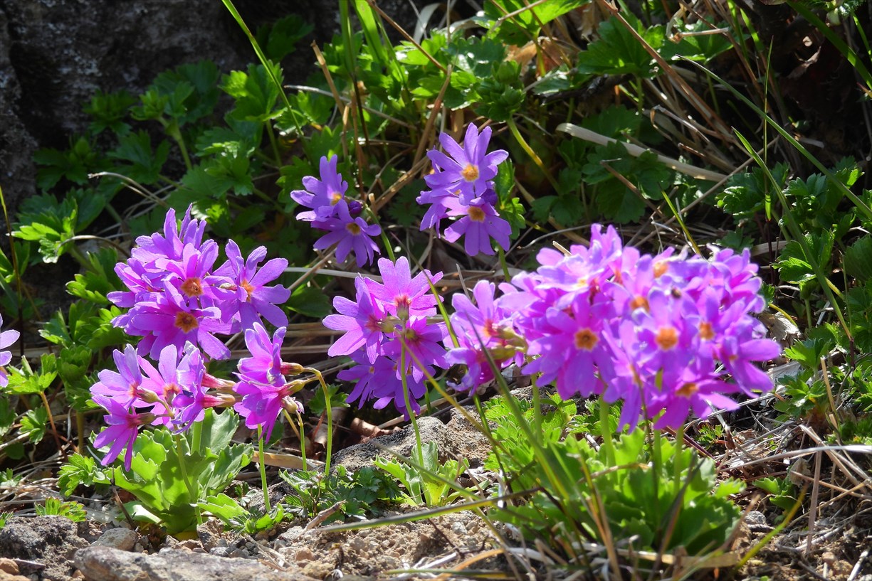 | 大館鳳鳴高校山岳部遭難者慰霊碑で咲くヒメコザクラ | ||||