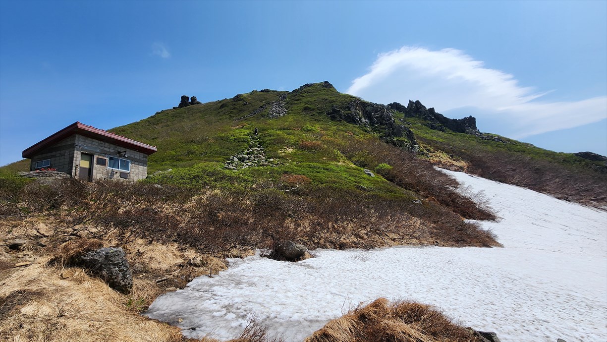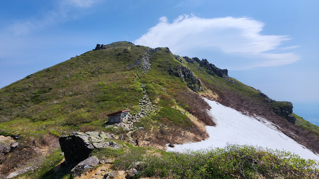 | 鳳鳴ヒュッテ&岩木山山頂 遭難碑から撮影 |