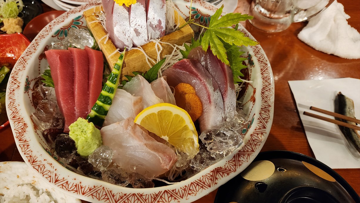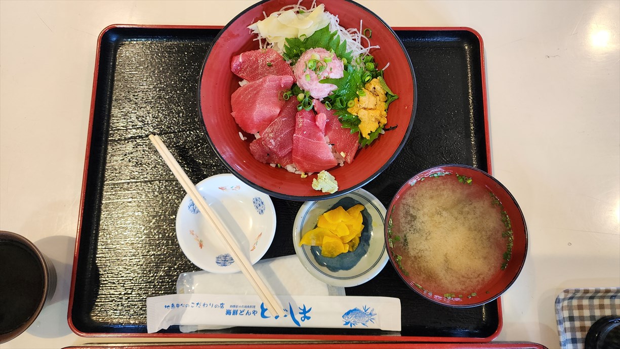 | 海鮮どんや・とびしま 1480円の舟盛り | ||||