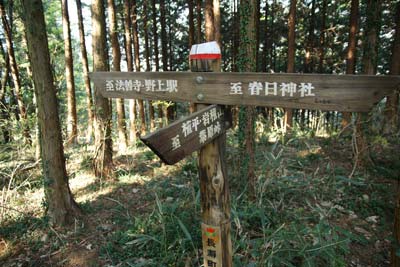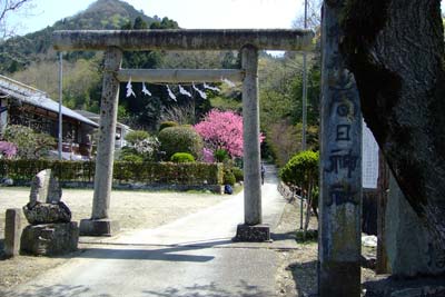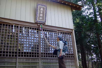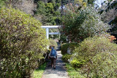 《写真にマウスを》 春日神社の鳥居を潜って金ヶ嶽へ向かう |