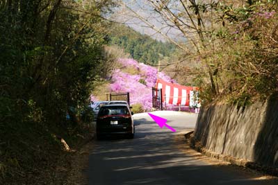 | 1回車道を横切った後、つつじ園上の車道に出る | つつじ園最上部の入り口 大人1人・500円 |