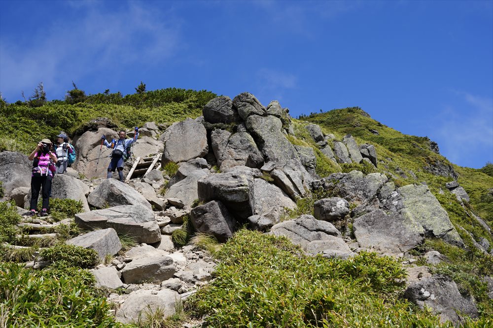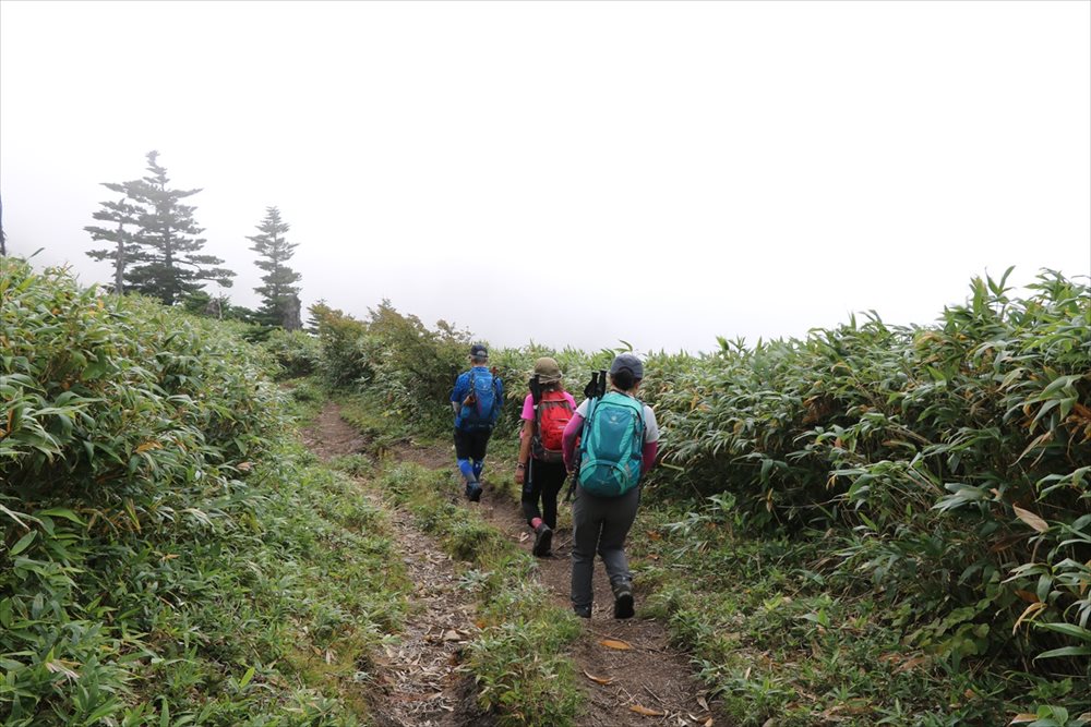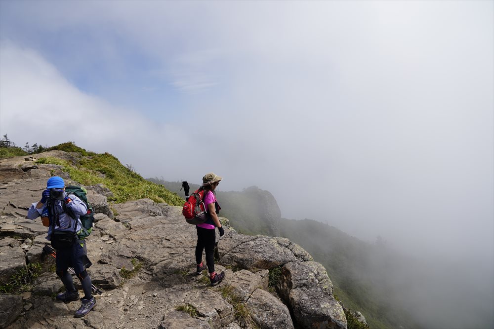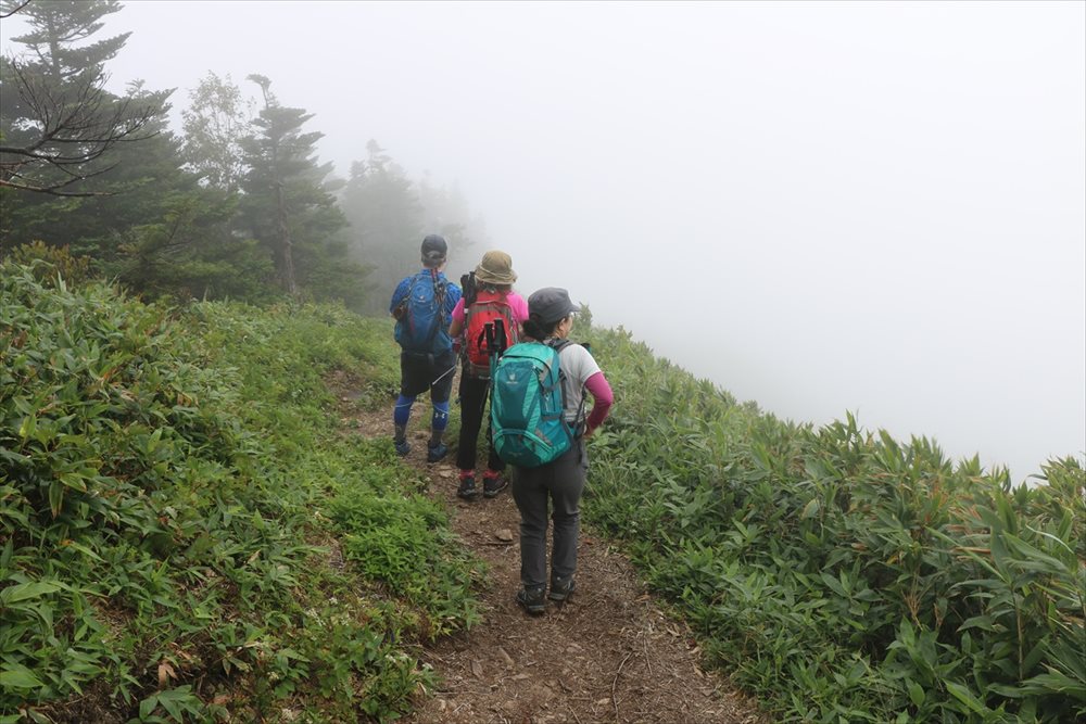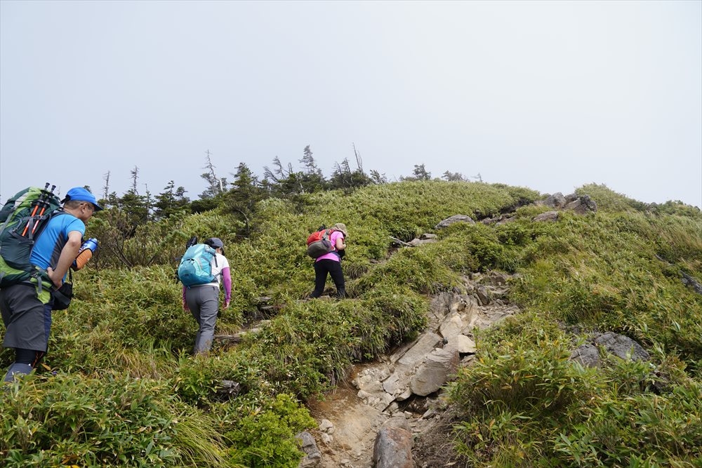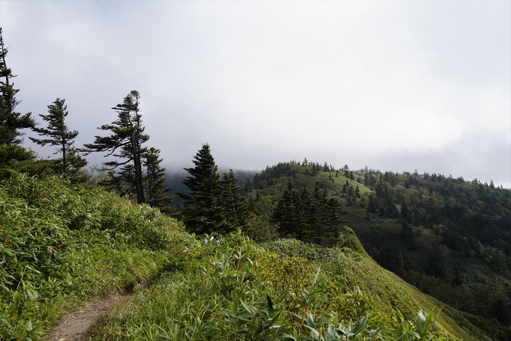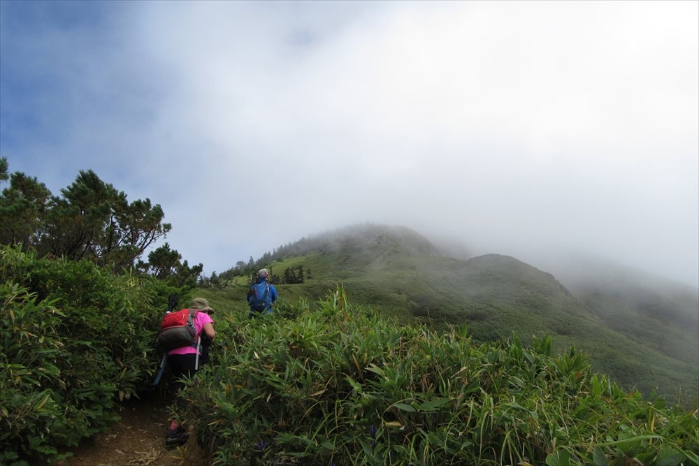 金山沢の頭(赤石山分岐点)を通過すると展望の良い稜線歩きになるはずだったが (ノД`) |
