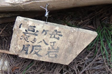 | 蹴っ飛ばせば無くなりそうな指導標だが有りがたい♪ 車道を200mほど下った左に前坂指導標あり |