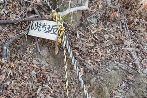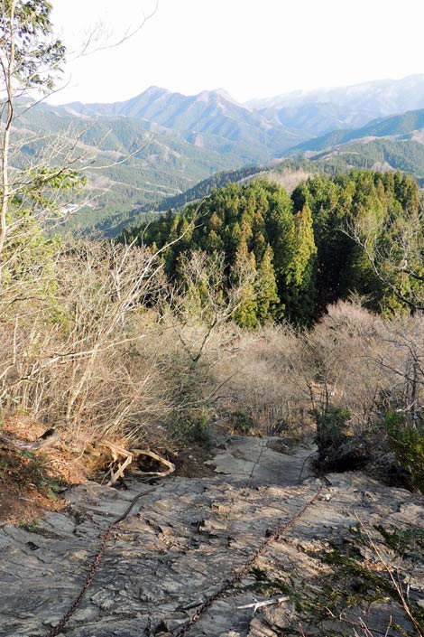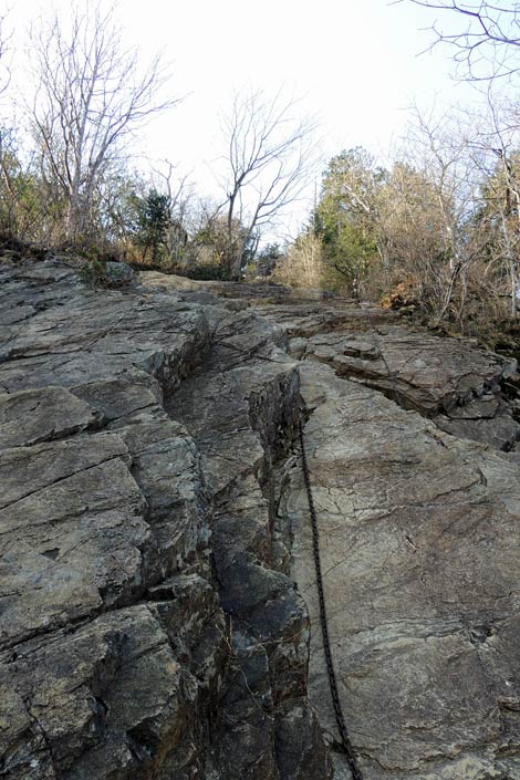 | 男坂・鎖が二本架けられているが雨降りでないかぎり三点確保で登れそうだ | ||||