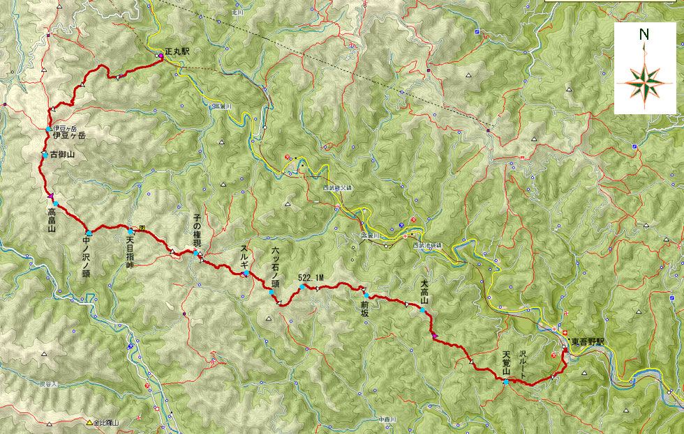 飯能アルプス(正丸駅−伊豆ヶ岳−子ノ権現−大高山−天覚山−東吾野駅)MAP![]() |