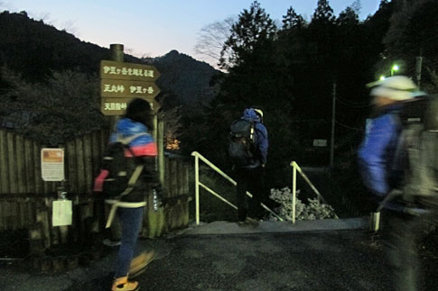 早朝薄明かりの中を伊豆ヶ岳に向けて出発 | |||