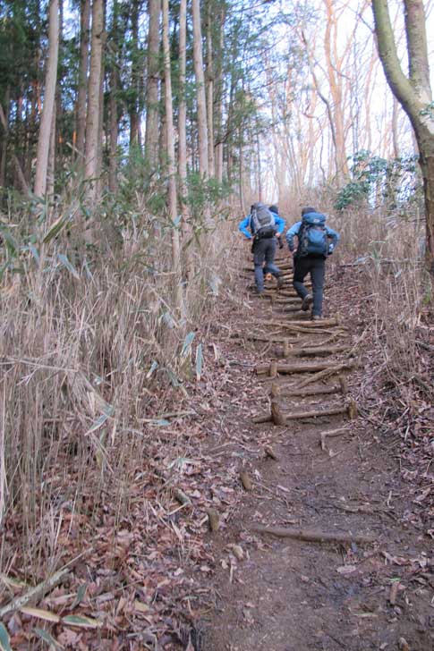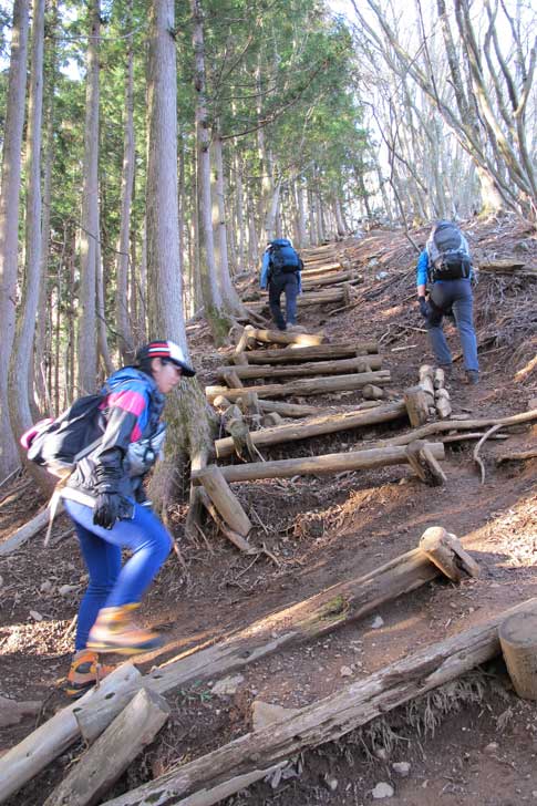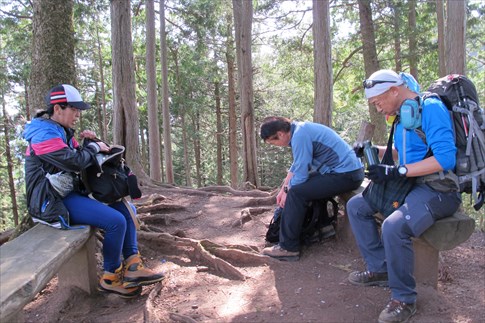 | 天目指峠からの急登をファイト | 急登終了地点のベンチで休憩 | |||