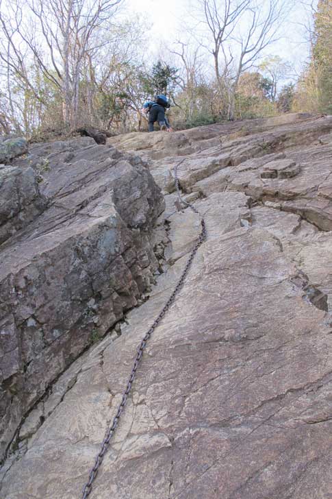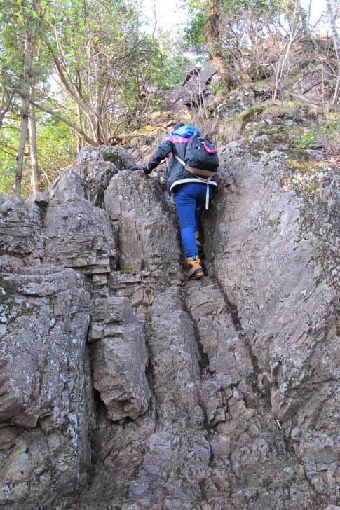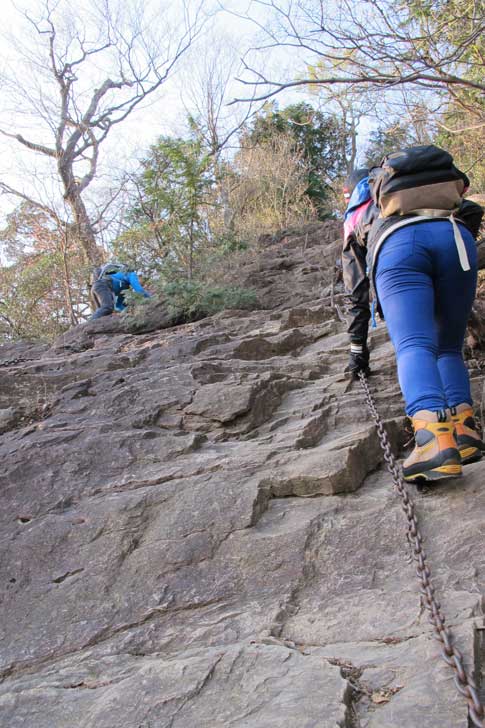 | するするっと登り込むこうちさん | 左/三点支持で登るbooさん 右/鎖場初体験の亀ちゃん | |||