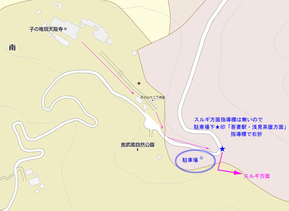 | 飯能グリーンCCを右手に見ながら進む | カマド山分岐点 | |||