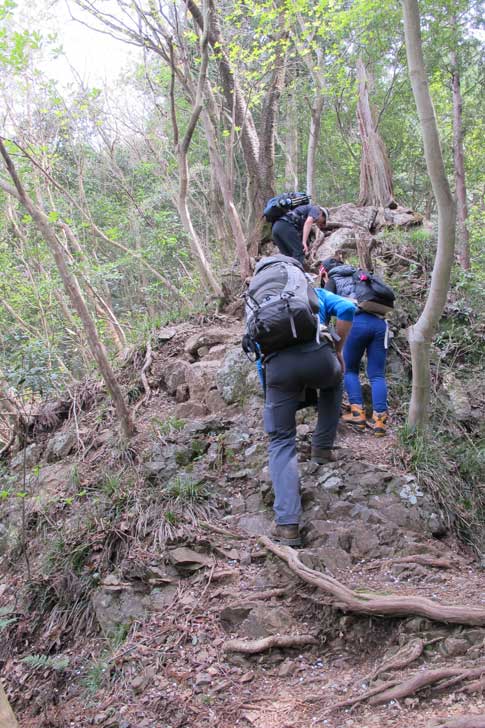 | 下って〜〜! 大岩を左に巻いて 登って〜〜! | ||||