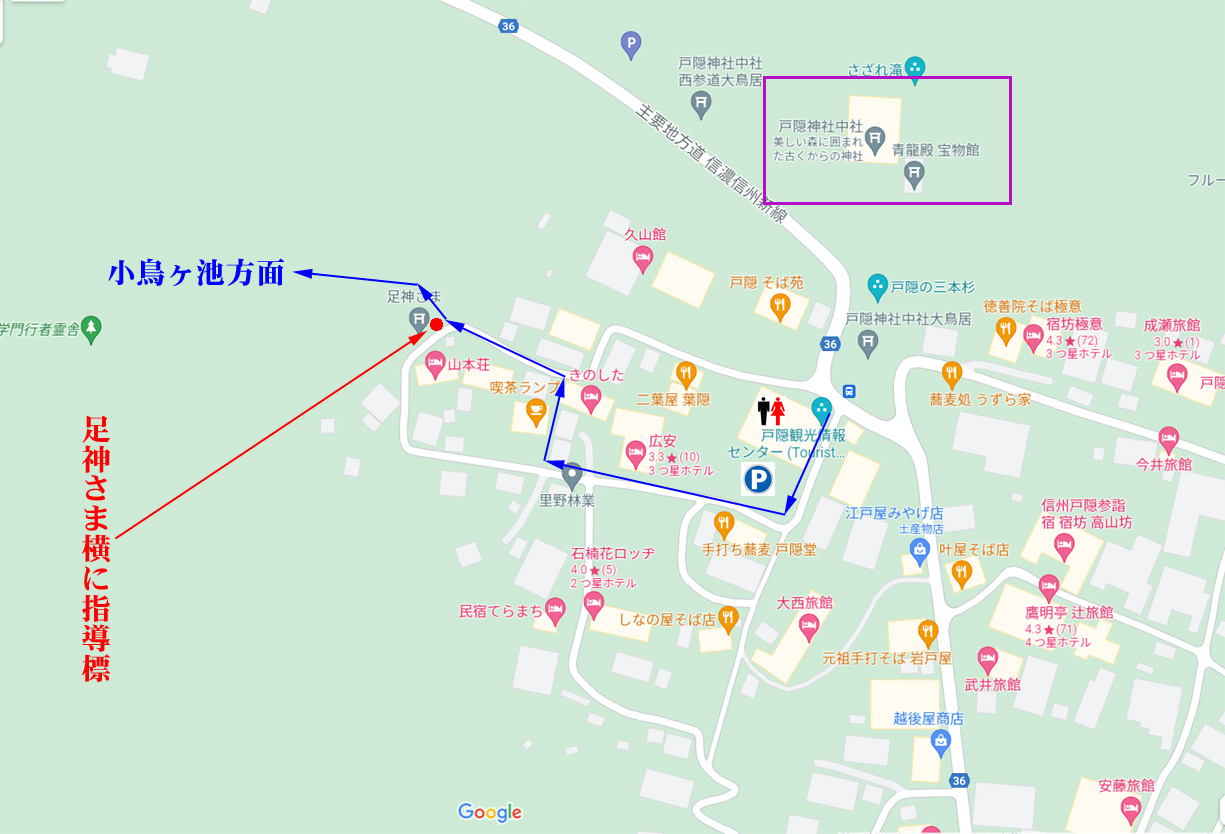 戸隠古道中社からのルートMAP |