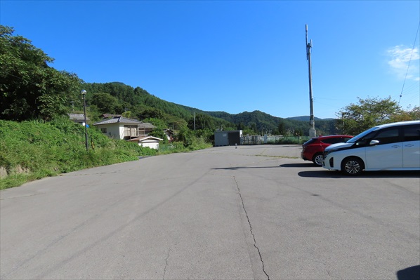 田沢温泉駐車場/右前方の建物は綺麗なトイレで24時間可