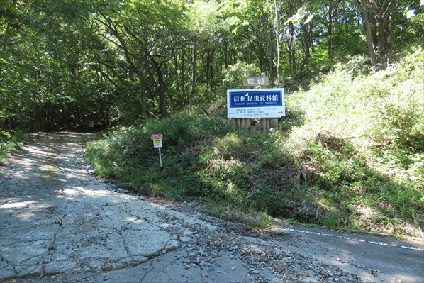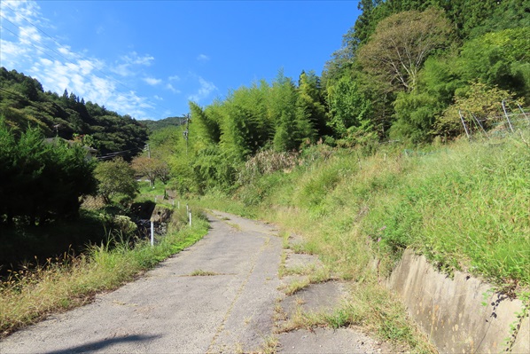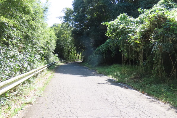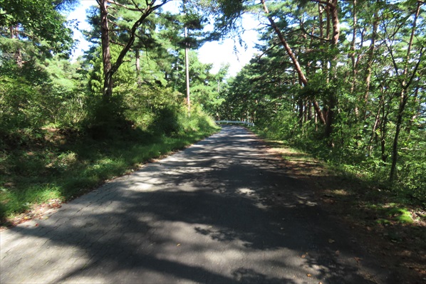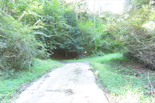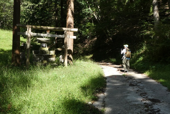 植林地帯終了場所が十観山登山口/以後は車道歩きとなる