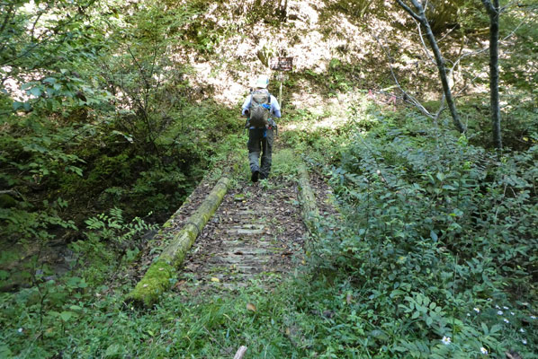 登山口から100b区間は沢に転落注意 以後は遊歩道並の登山道となる