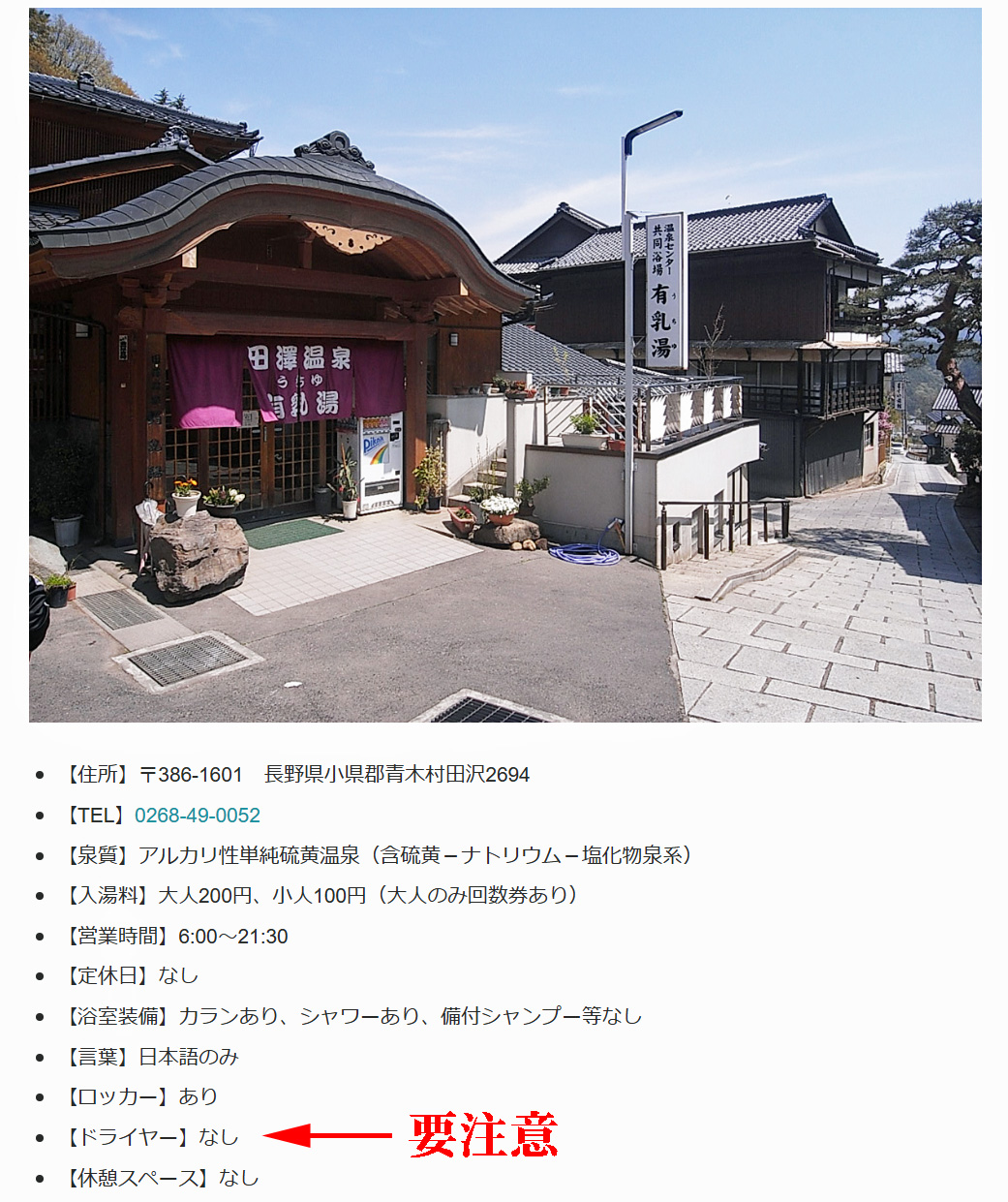 ページ下段に「登山後の温泉ライフ」として該当温泉を記載