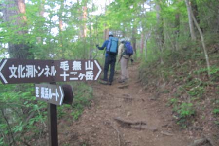 | 毛無山登山口 | 尾根取り付き 左=五湖台 右=毛無山 |