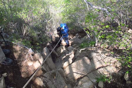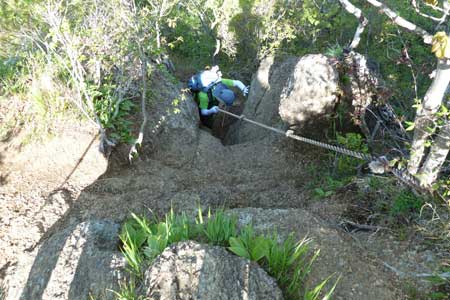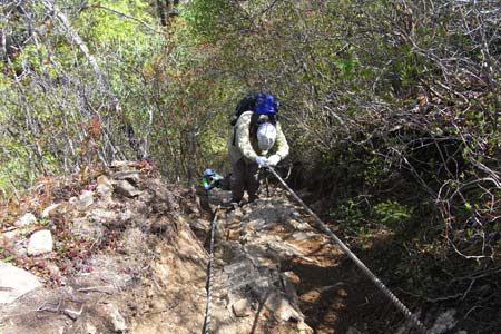 | 十一ヶ岳 | 本日のハイライトシーン その1 十一ヶ岳からの長〜い下りロープ |