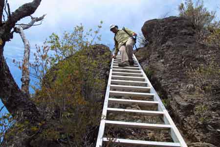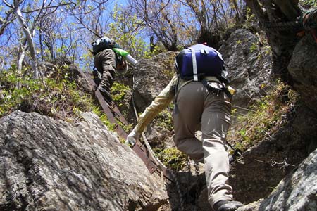 アルミ梯子を下って雪頭ヶ岳へ向かう | |||
