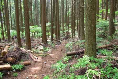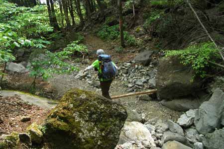 | 針葉樹林帯も間伐が進み前回より明るくなったかな? | この涸沢を渡れば砂防堰堤が近い | |||