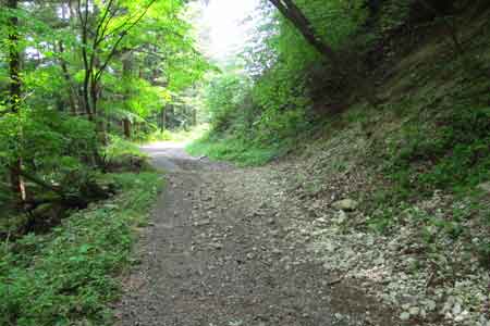 未舗装車道を歩き根場駐車場へ向かう | |||