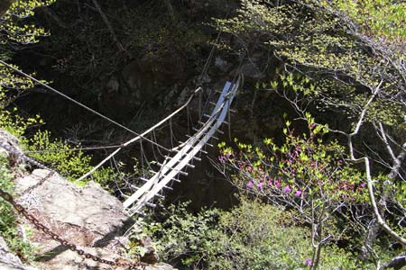 | 本日のハイライトシーン その2 鞍部に架かる吊り橋 |