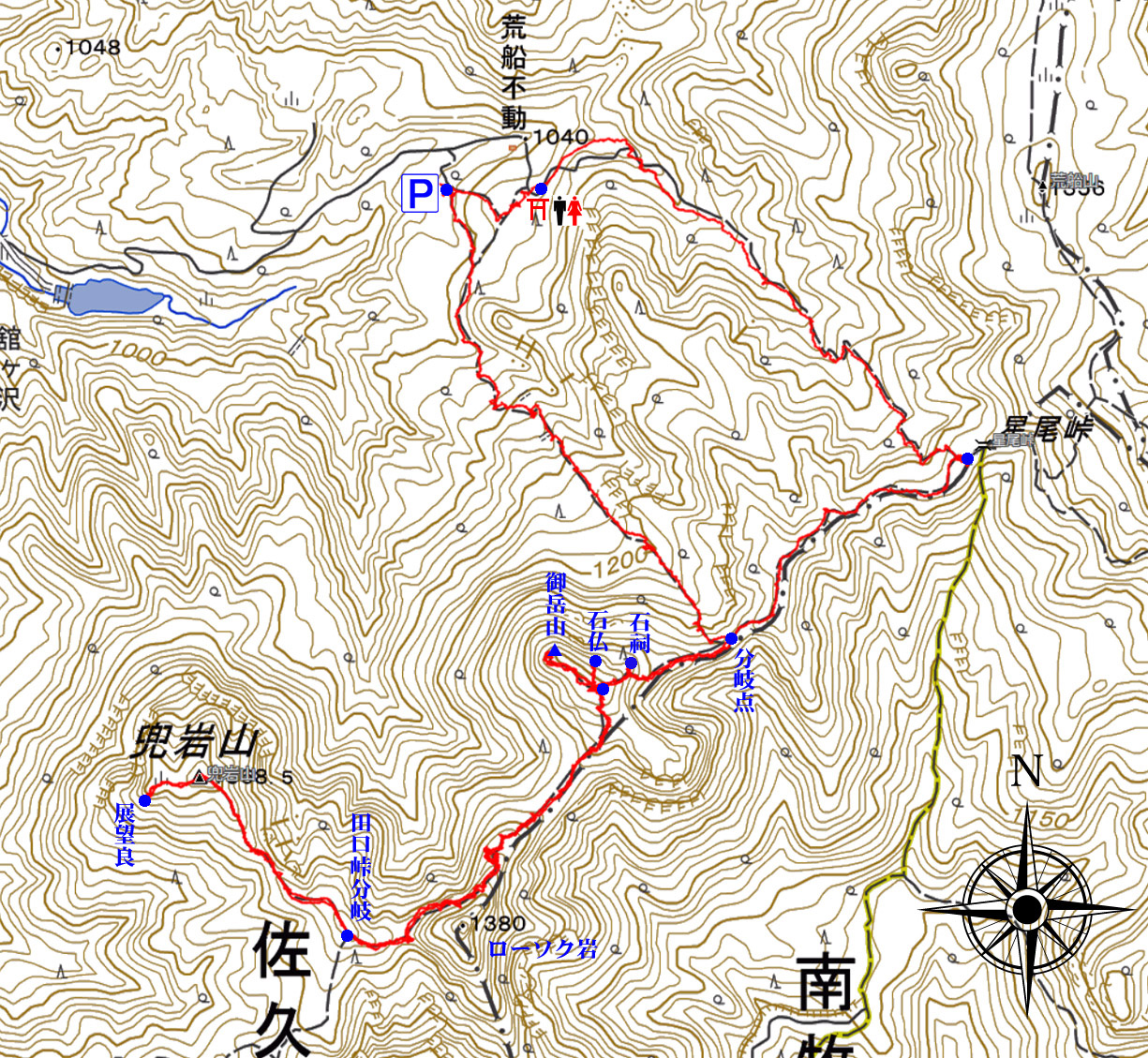 | 兜岩山ルート地図 (計曲線 50M 主曲線 10M) |