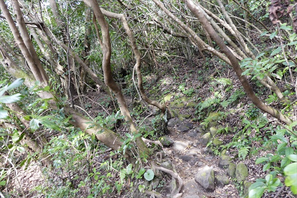 | 二合目登山口 | 桜並木の急坂を下る | |||