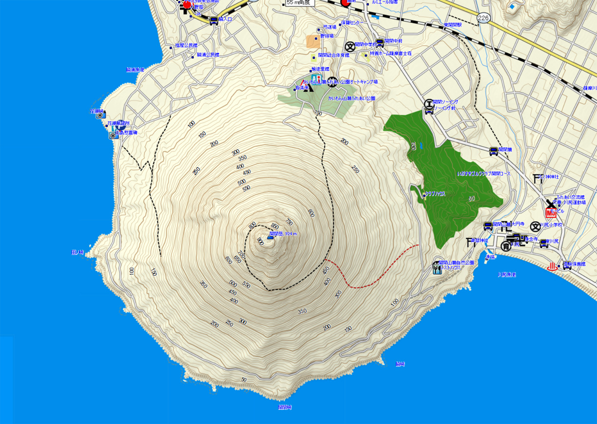 | 開聞岳ルート地図 (計曲線 50M 主曲線 10M) |