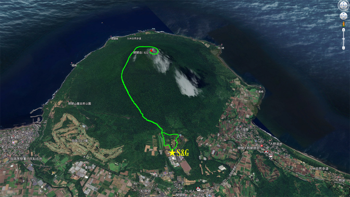 | 日本百名山・開聞岳鳥瞰図 ヤマレコ⇒https://www.yamareco.com/modules/yamareco/detail-7633337.html |