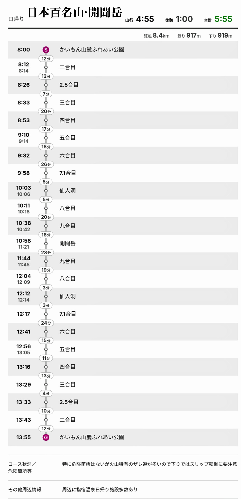 | 《開聞岳コースタイム他》 写真撮影時間20分〜100分含む |