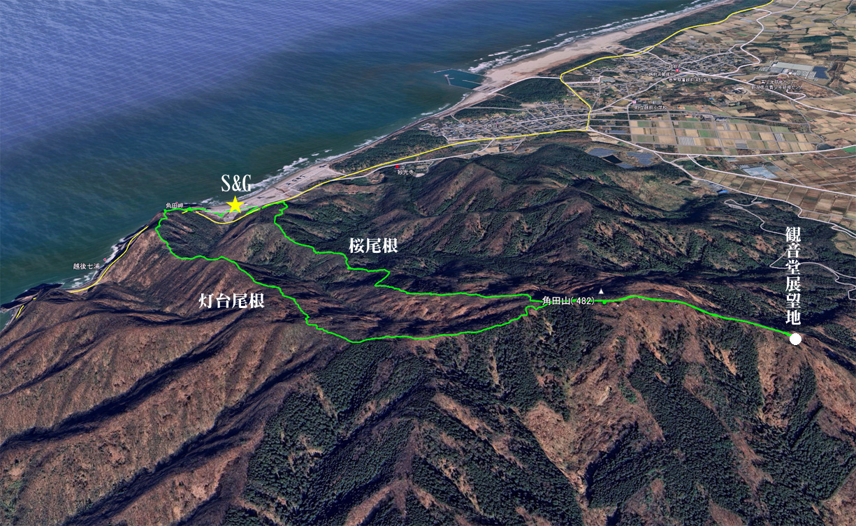 | 角田山鳥瞰図 ヤマレコ⇒https://www.yamareco.com/modules/yamareco/detail-6571978.html |