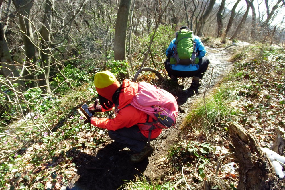 | 普段なら桜尾根にはいると雪割草やカタクリが沢山咲いているのだが・・・( ノД`) | ||||