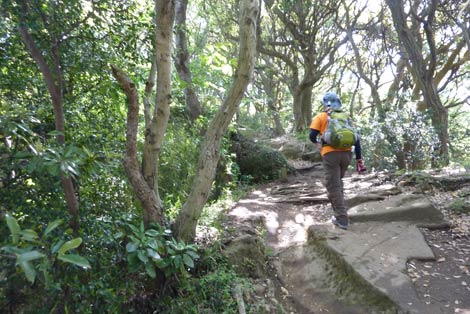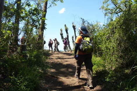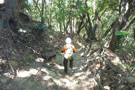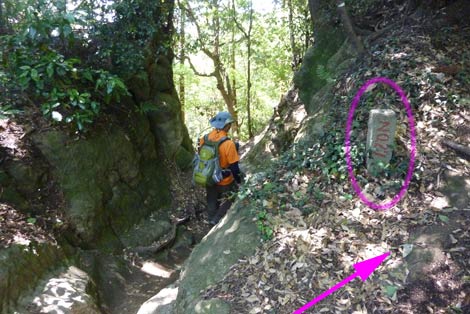 貝吹地蔵手前で斜め右に入る(指導標がないので素通り注意) 天台山 141M 石祠と三等三角点 |