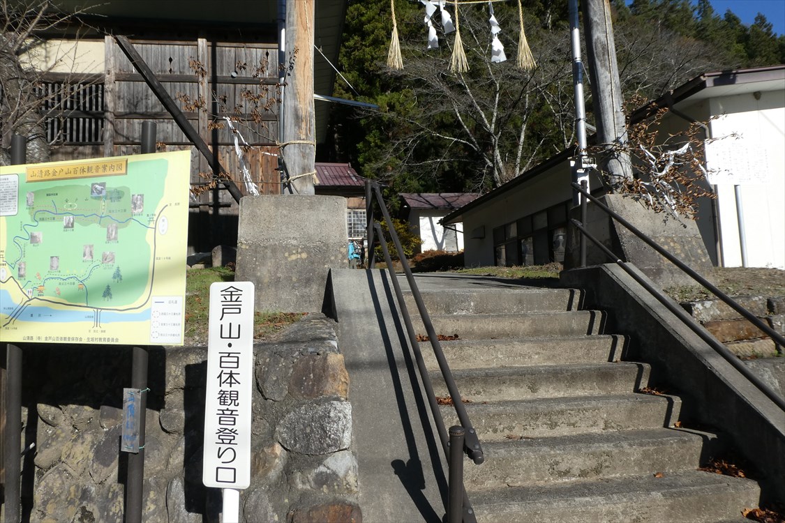 | 金戸山登山口 京ヶ倉下山後、金戸山登山口の会神社駐車場に移動 |