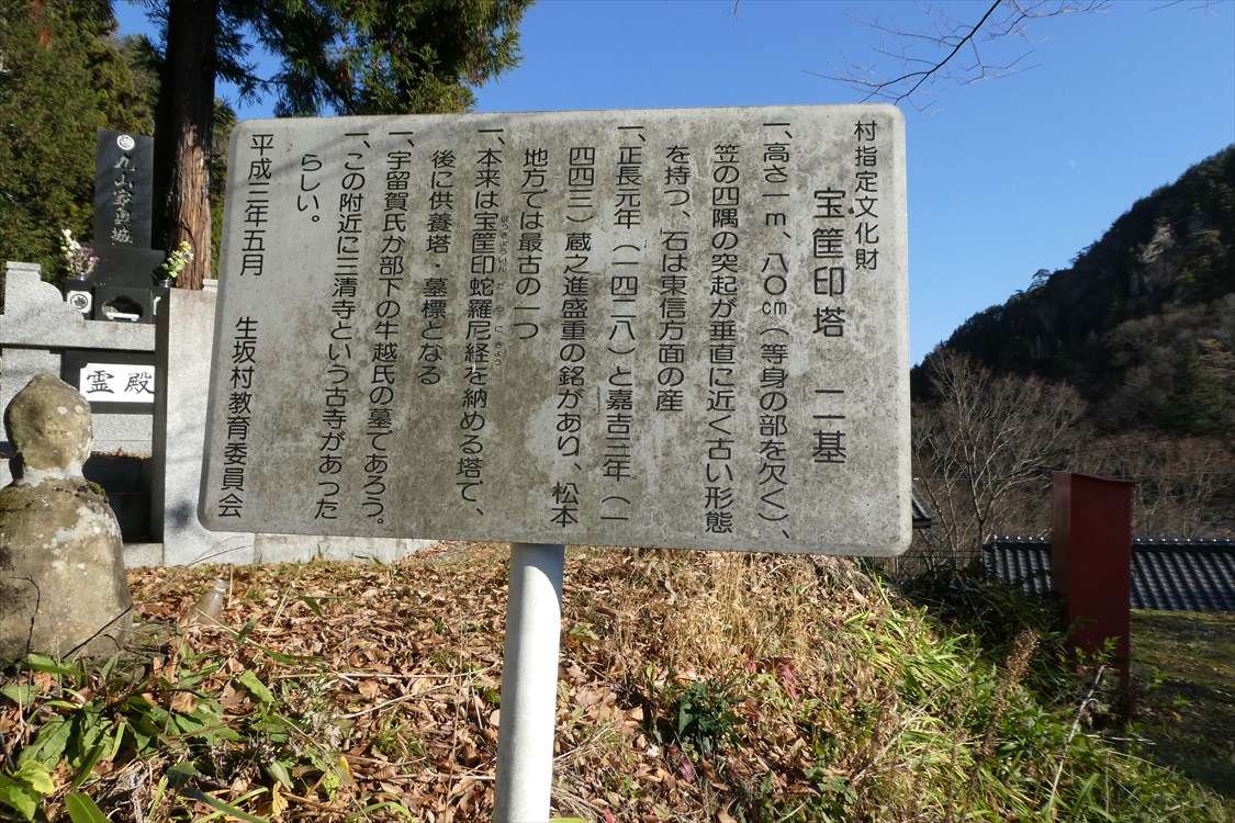 | 墓地入り口の宝筐印塔案内板 | ||||