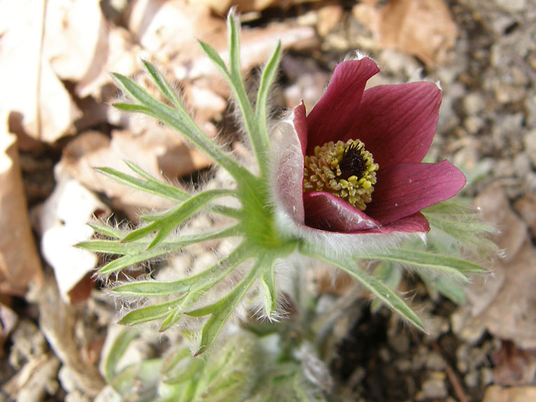 | 翁草(おきなぐさ)・キンポウゲ科 花が終わると長い白毛を密生した果実の集まりとなる事から由来 |