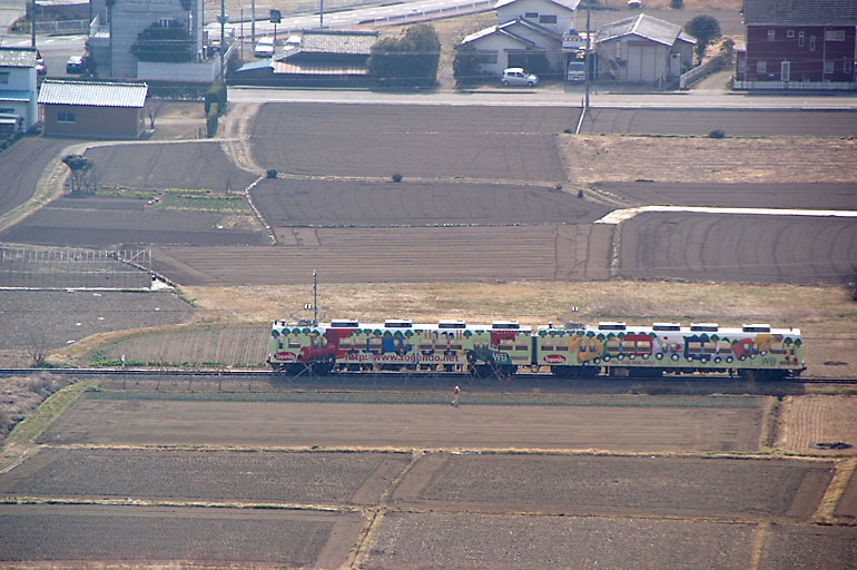 | 田園風景の中を走る遊び心いっぱいの絵本電車 (^^)/~~~ 西宮吾妻山手前より |
