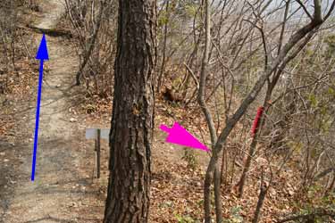 | 緊急下山道(ピンク矢印) | 神成山の頭がチョコット見える | |||