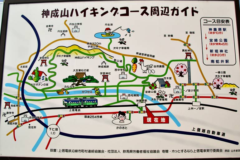 | 上信電鉄「かのはら駅」に設置された周辺ガイド案内板 | ||||