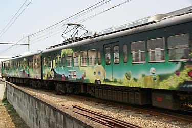| 上信電鉄・なんじゃい駅 / メチャ派手だが子供受けするイラストが描かれた電車 時間が空いたらイラスト電車特集も楽しいかも・・・ |