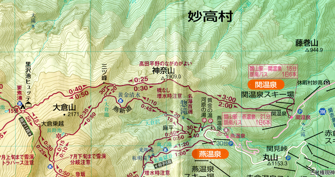 | 関温泉スキー場・神奈山入り口 | 妙高山を眺めながらスキーゲレンデを上る | |||