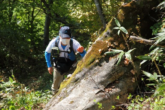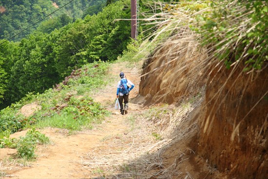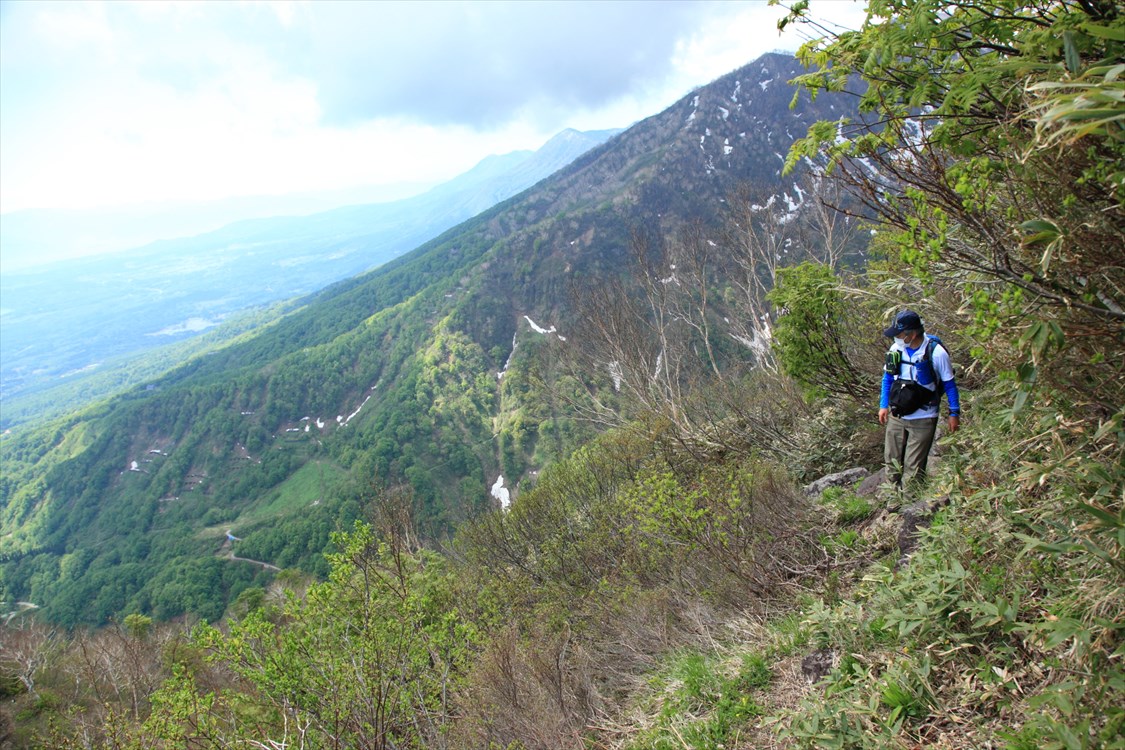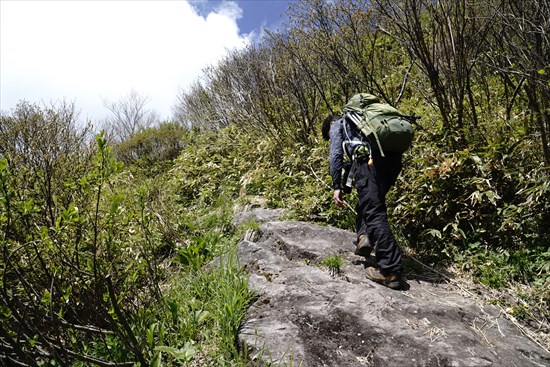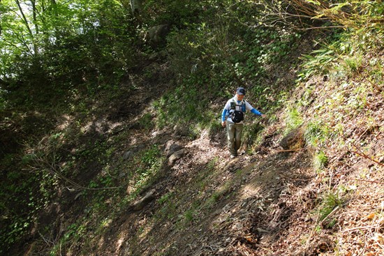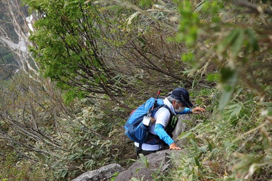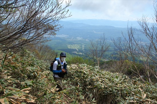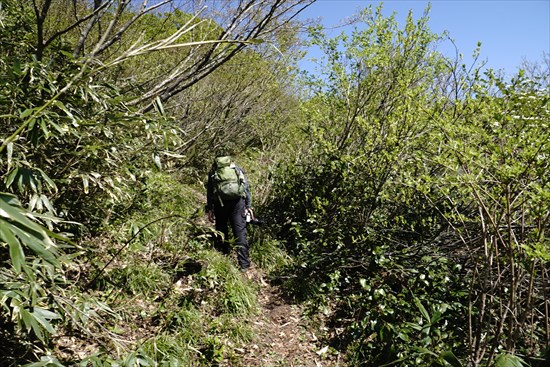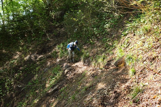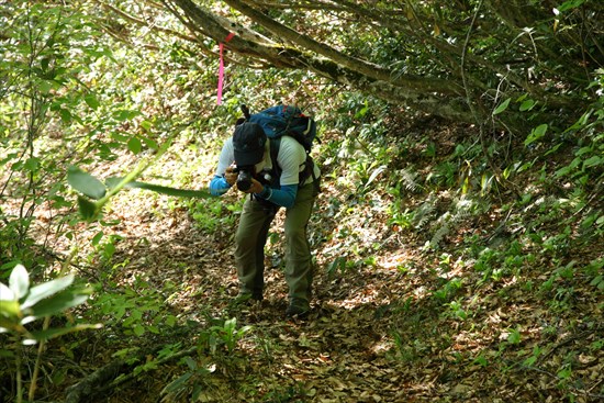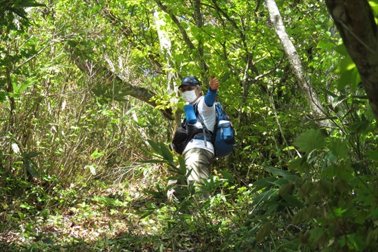| 背丈より高い灌木が多く展望ゼロ | ここでスッテンコロリしたら 200㍍級の滑り台になるので要注意! |