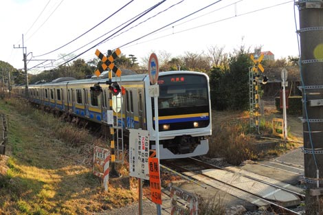 外房線電車踏切を通過 |