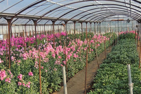 ハウス内ではストックが満開 |
