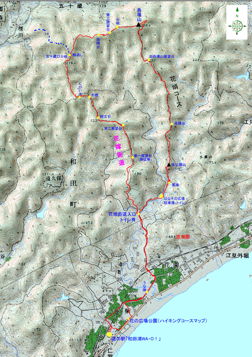 近年ハイキングコースとして整備され花嫁街道と呼ばれるようになった。 コースマップより抜粋